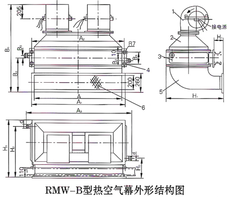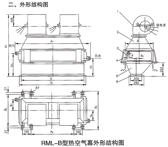 RML(W)-B hot air curtain is mainly composed of fan, air heater, upper and lower air guide covers, air outlet cover and other parts. It is a device that heats indoor air through an air heater, and the heated air is blown out by a fan to form an air curtain, which is used to isolate indoor and outdoor cold and hot air. This equipment has many characteristics, such as low noise, power saving, easy installation, convenient use and maintenance, etc. The heat medium of this hot air curtain is mainly 0.1~0.6Mpa steam, and its installation forms are divided into vertical and horizontal. It is widely used in ventilation, heating, air conditioning and other projects in various industries, especially in places where people frequently come in and out and doors are often opened, such as shopping malls, theaters, hotels and so on.